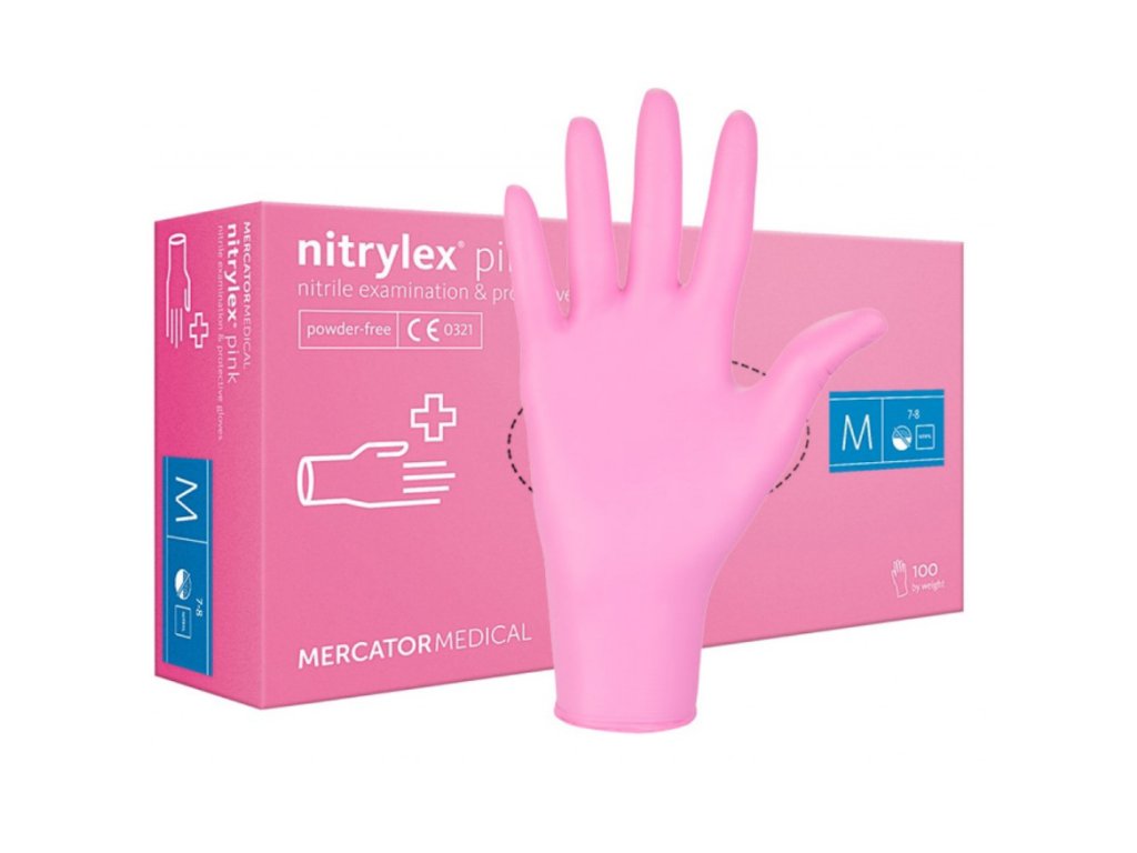 Jednorázové nitrilové zdravotnické rukavice Mercator NITRYLEX růžové 100 ks