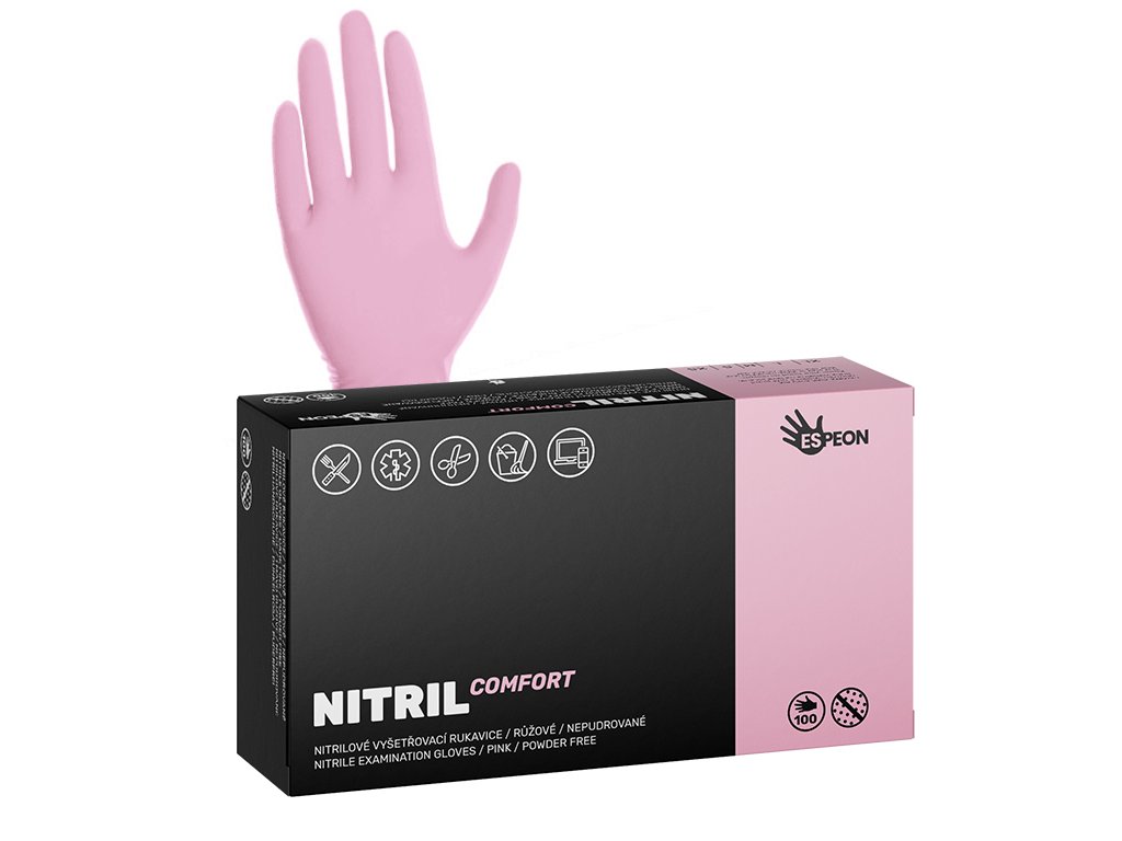 Nitrilové rukavice Espeon NITRIL COMFORT 100 ks, nepudrované, růžové, 3.8 g